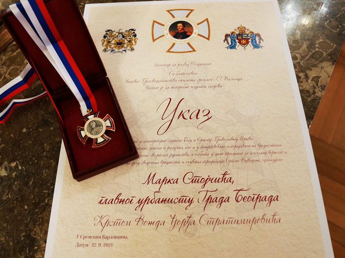 Naime, ovom prilikom je visokim crkveno-društvenim odlikovanjem – Krstom vožda Đorđa Stratimirovića odlikovan gospodin dipl.inž. arh. Marko Stojčić, glavni urbanista Grada Beograda.