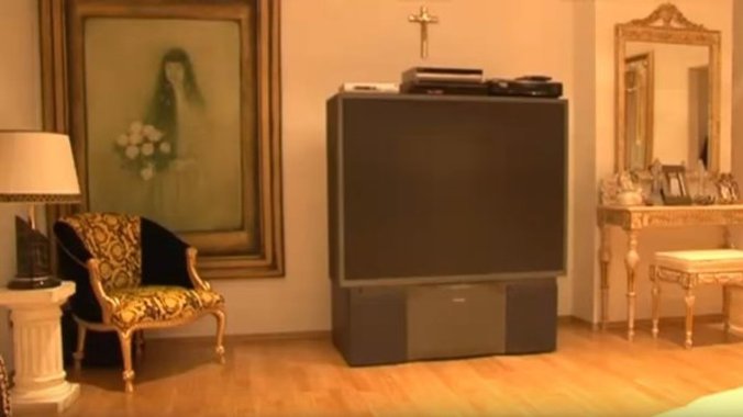 Njena dnevna soba obiluje mnoštvom detalja koji je krase, a na ulazu u sobu za porodična okupljanja nalazi se elegantna zavesa, dok središnje mesto zauzima ogromni plazma televizor.