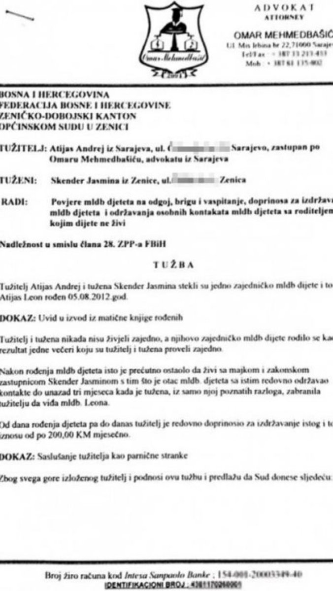 Prvo, ona priča da su oni bili u nekoj ozbiljnoj vezi, a oni su samo jedno veče bili zajedno... I to svi znaju. Desilo se šta se desilo, šta sad, tri meseca od tada mu se javila i rekla da je trudna. On nije bežao od odgovornosti kao što ona priča. Prihvatio je sve obaveze, plaćao je detetu alimentaciju 200 konvertabilnih maraka (oko 100 evra), a problem je nastao kad mu je Jasmina zabranila da viđa sina. Tada ju je tužio - objašnjava izvor, a ekipa našeg portala došla u posed skeniranih uplatnica, koje dokazuju ove tvrdnje.