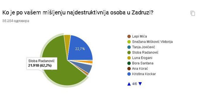 Paralelno sa zadrugarima i gledaoci rijaliti programa "Zadruga" imali su priliku da izaberu najdestruktivniju osobu pod krovom Bele kuće, a publika je izabrala da to bude Sloba Radanović.