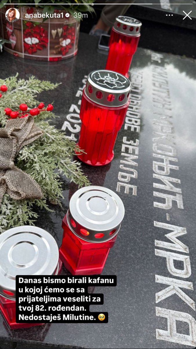 - Danas bismo birali kafanu u kojoj ćemo se sa prijateljima veseliti za tvoj 82. rođendan. Nedostaješ Milutine - napisala je ona uz fotografiju grobnog mesta.