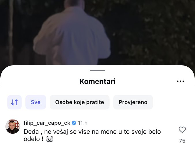 - Deda, ne vešaj se više na mene u to svoje belo odelo - napisao je Filip Car i stavio emotikon pande.