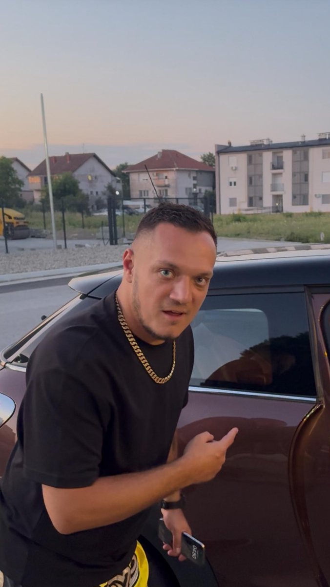 Gastoz je stigao vidno raspoložen, i bez mnogo razmišljanja uskočio u Anđelin automobil, dok ga je naša ekipa snimala, kratko i ironično se obratio: