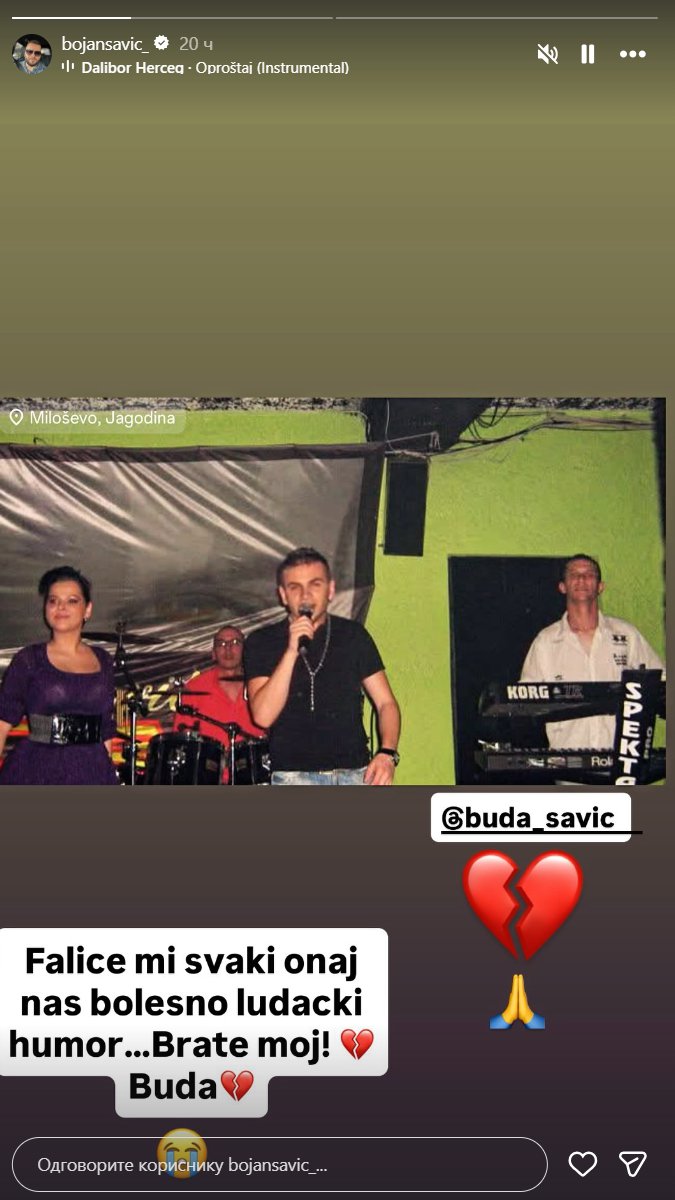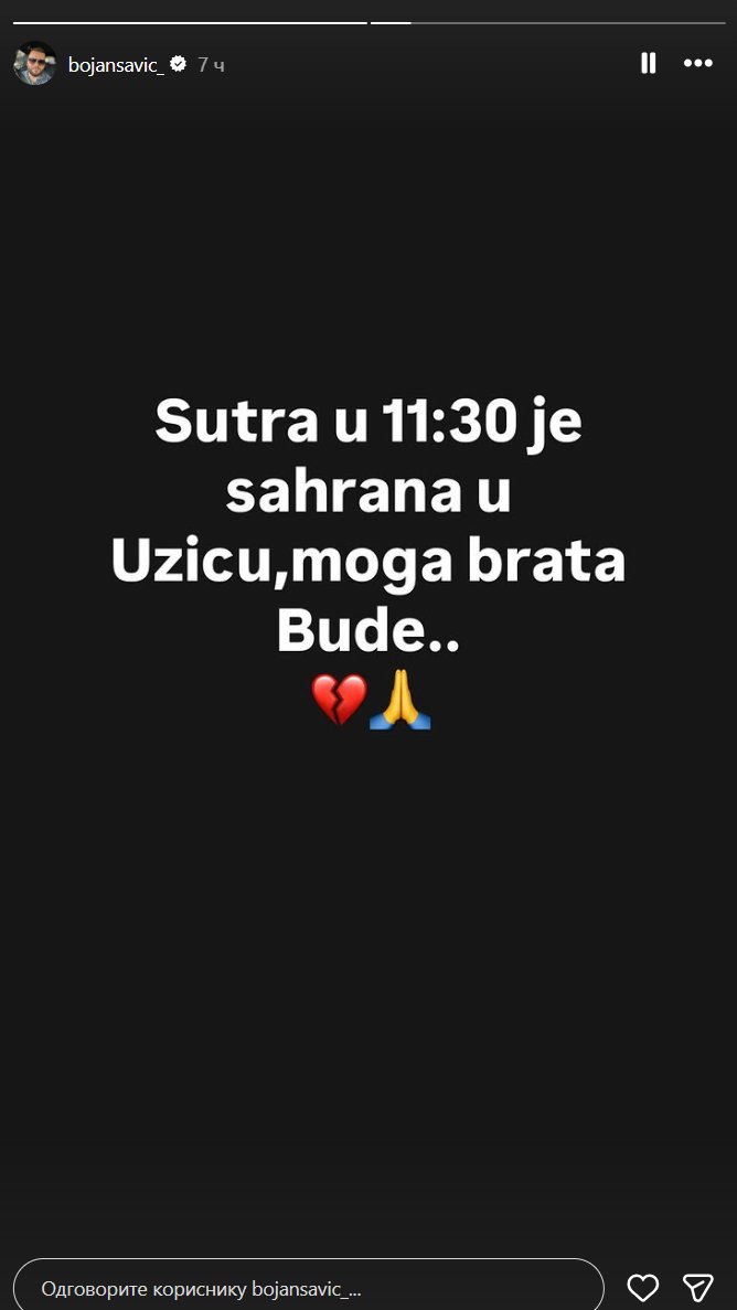 Naime, na svom instagram profilu, oglasio se Budin brat, Bojan Savić, koji nije krio tugu za svojim preminulim bratom, pa se i on, takođe, oprostio od njega.