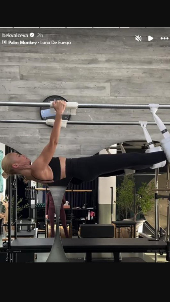 Na društvenim mrežama podelila je snimak sa treninga na reformer pilatesu, gde vežba u crnom topu i uskim helankama, a njena figura nikoga nije ostavila ravnodušnim.
