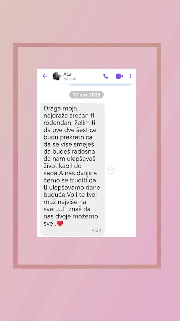 - On je bio u Australiji. Čestitao mi je rođendan, ja sam vam poslala to, baš onako emotivno. Napisao mi je, jer smo bili tri meseca razdvojeni, to je bio najduži period. Ja kada sam dobila tu poruku, ja sam plakala, baš je onako lepa - rekla je Biljana.