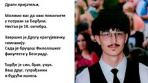 KRAGUJEVČANI, POMOZITE! Prošlo je skoro tri nedelje od nestanka Đorđa Jankovića (19) - porodica i prijatelji se ne predaju - HITAN APEL