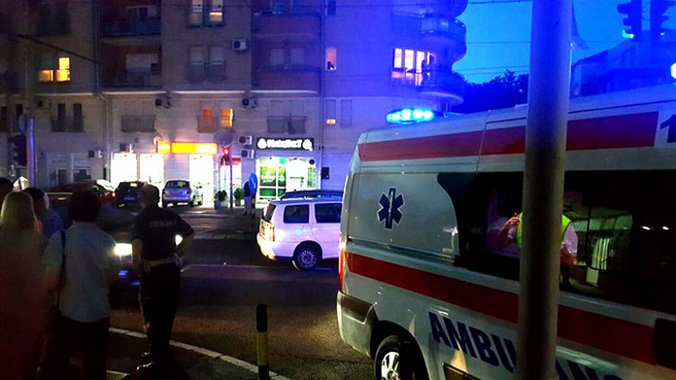 U nezgodi u ulici 11. oktobra u Bečmenu  oko 19:27 povređeni su žena (39) i muškarac (42) i prevezeni na Odeljenje za neurohirurgiju Kliničko-bolničkog centra "Zemun".