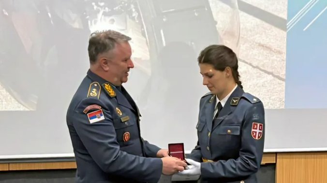 Letački znak potporučnici Stević uručio je komandant RViPVO, general-major Branislav Knjajić.