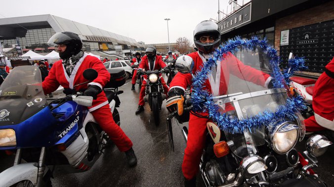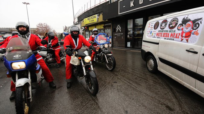 Humanitarna akcija "Moto deda Mraz", u kojoj motoraši, obučeni u kostime Deda Mraza, deci dele novogodišnje poklone, danas je po 14. put održana u Novom Sadu.