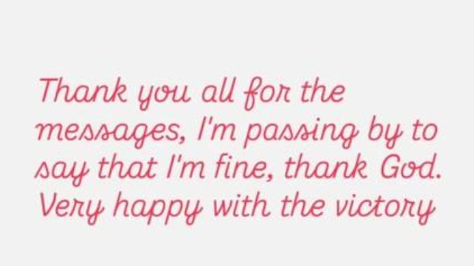 - Hvala svima na porukama, javljam se da kažem da sam dobro, hvala Bogu. Veoma sam srećan zbog pobede - napisao je Mateus.