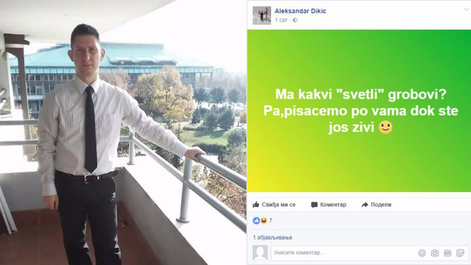 - Ma kakvi "svetli" grobovi. Pa pišaćemo po vama dok ste još živi - napisao je Dikić i dodao smajlija?!