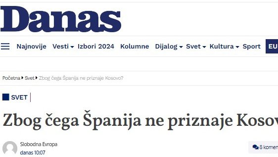 Međutim, list opozicije Danas tuguje i samo što ne zaplače, te ljutito postavlja pitanje "zbog čega Španija ne priznaje Kosovo?", na taj način ponovo propagirajući antisrpsku politiku.