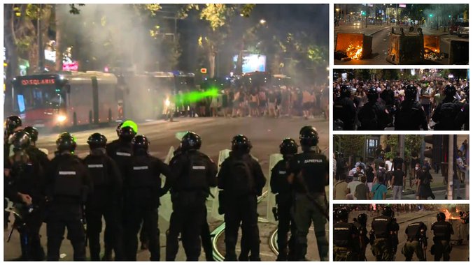 Jedan od povređenih policajaca udaren je metalnom štanglom po grudima, a drugom ušivaju glavu jer je pogođen kamenom.