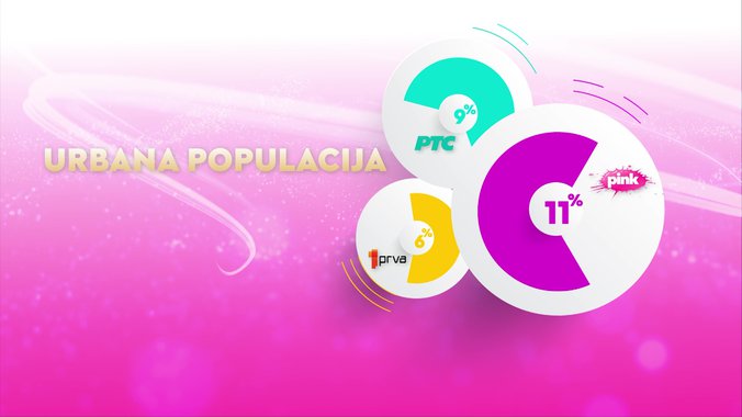 Televizija Pink je od svih komercijalnih emitera, ali i Javnog servisa Srbije bila gledanija u totalu, među ženskom publikom, među gledaocima starosti od 18 do 49 godina, među ženskom publikom starosti od 18 do 49 godina, među gledaocima sa teritorije Beograda, među gledaocima iz prestonice starosti od 18 do 49 godina, kao i među urbanom populacijom.