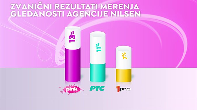 Televizija Pink je tokom petka, subote i utorka bila najgledanija televizija u Srbiji, dok je u nedelju i ponedeljak bila najgledanija komercijalna televizija u Srbiji, govore jedini zvanični rezultati merenja gledanosti agencije Nilsen.
